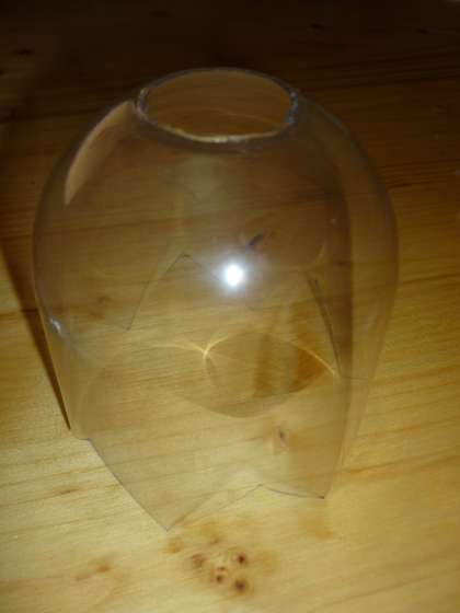 Corta el vaso de plástico transparente a la mitad y pégalo en frente al volante, de modo que tenemos también nuestro parabrisas.